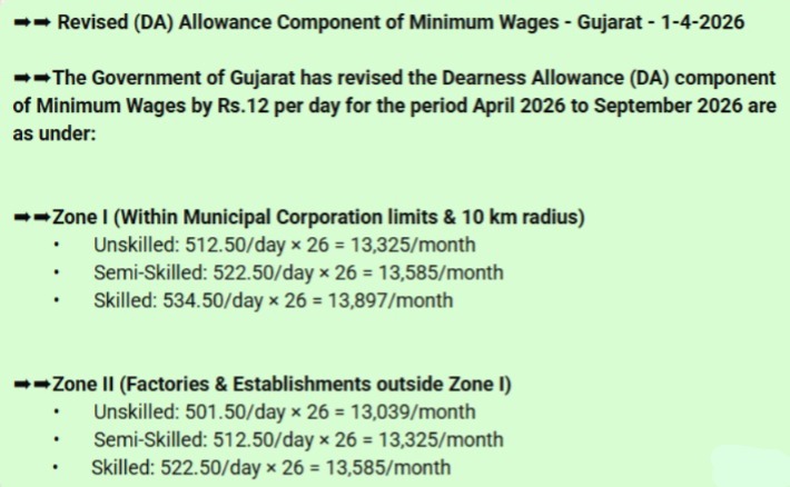 Revised (DA) Allowance Component of Minimum Wages - Gujarat - 1-4-2026